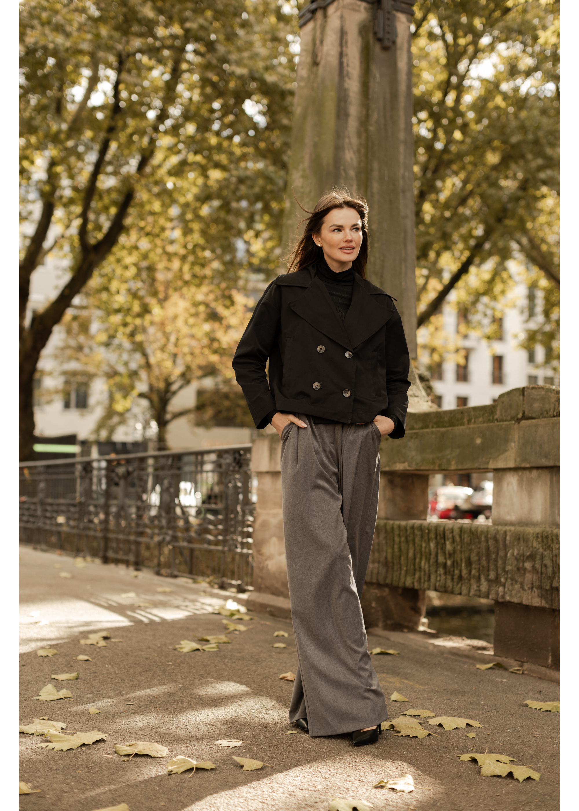 The cropped jacket CASLIWA impresses with its modern, shortened cut and striking volume. The oversized fit with slightly offset shoulders gives the design a relaxed silhouette. A special highlight: the exclusive NCW monogram pendant on the back — a subtle gold accent.