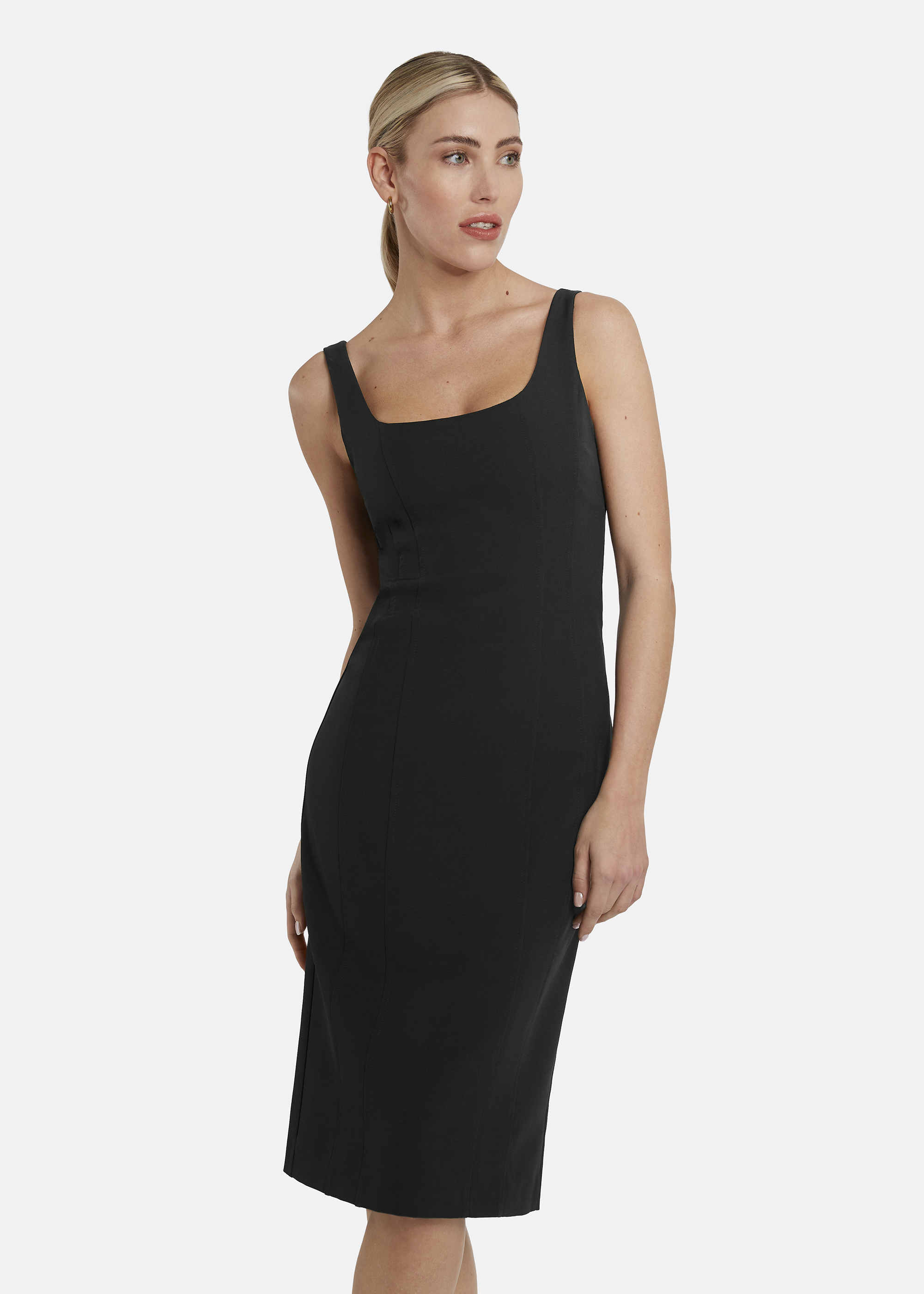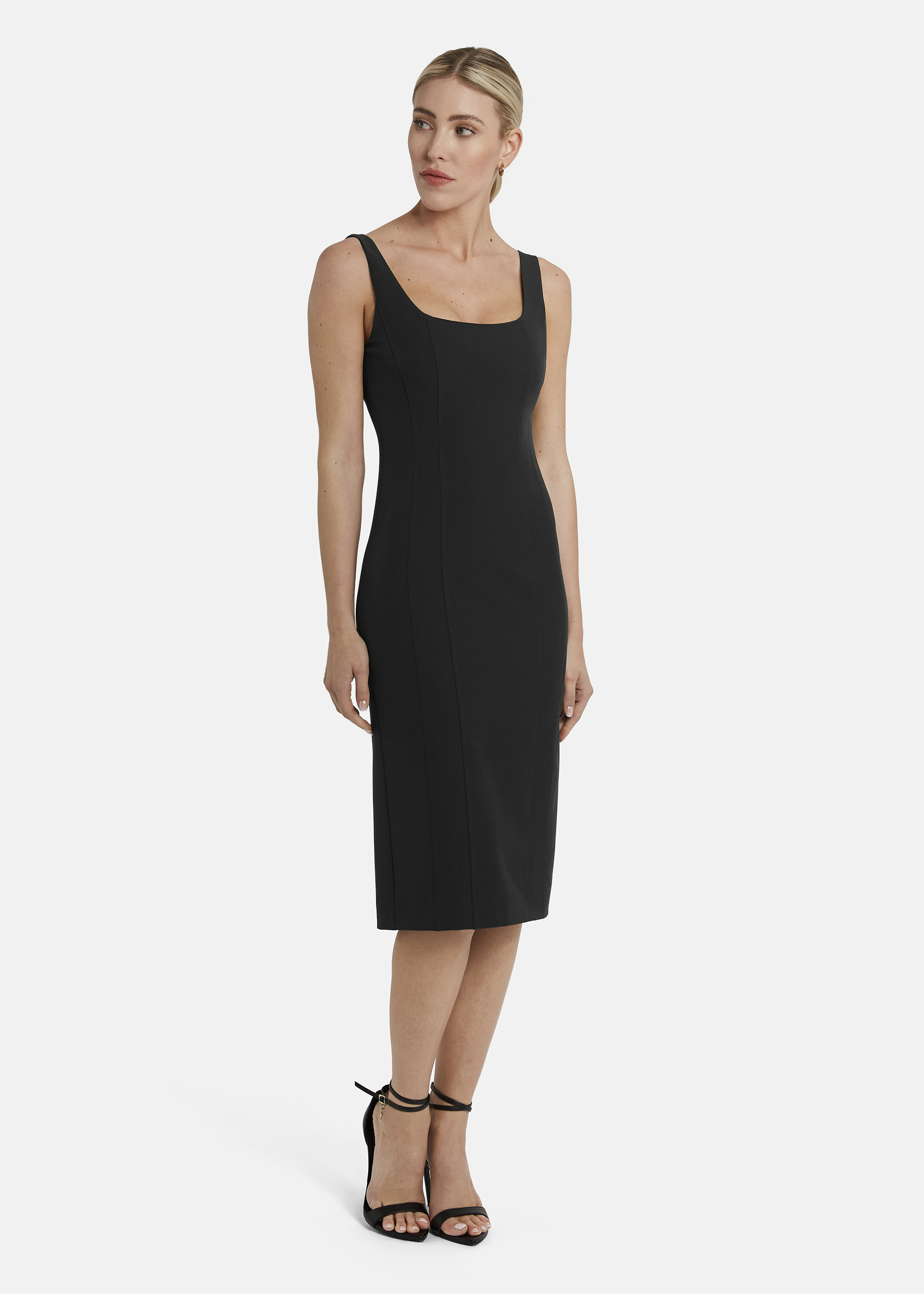 The elegant MIOLANI tailored midi dress creates a feminine silhouette through its panel seams, harmoniously accentuating the figure. This design is complemented by the high-quality, shape-retaining fabric, which also provides comfortable wear and a perfect fit. A feminine, elegant evening dress—made in Italy.